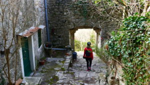 Ruševina je poprilično očišćena od raslinja pa se po kojoj lijepo možete kretati, a u nju se ulazi kamenim stepenicama i kroz pravi prtun. Najprije se dolazi u svojevrsno dvorište sa starom kamenom kućom, a u nastavku je urušena crkva svetog Hadrijana. Šumski put i stepenice dalje vode prema vrhu kaštela koji smo na ovoj ruti jedva iščekivale.