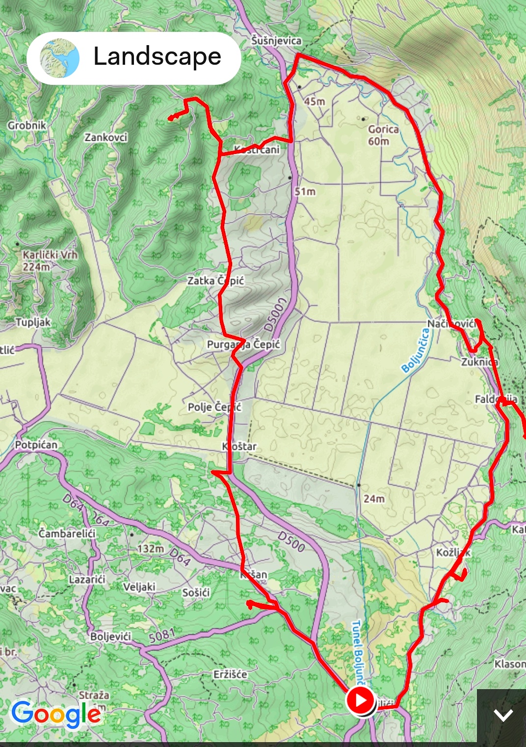 Ipak nije zarasla, i kada se njome krećete imate osjećao kao da će svakog trenutka doći vlak. Inače, dugačka je oko 53 kilometra, a u svom prvom dijelu ide uz pitoreskno podnožje Učke.