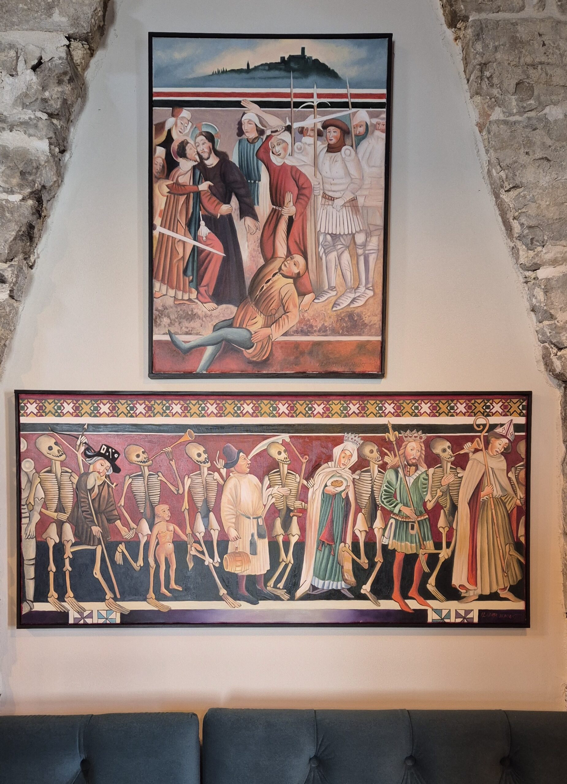 Osim pića, Romanesque House nudi posjetiteljima uvid u istarsku priču kroz izložbu posvećenu Velom Joži, legendarnom divu iz pera Vladimira Nazora, čije ilustracije Saše Šantela iz prvog izdanja iz 1908. godine čine jezgru izložbenog postava. U prostoru se isprepliću i slike lokalnih umjetnika poput Vladimira Vengusta i Saše Petroševskog Novaka, a dodan je i kutak s mini knjižnicom te reinterpretacijama istarskih fresaka.