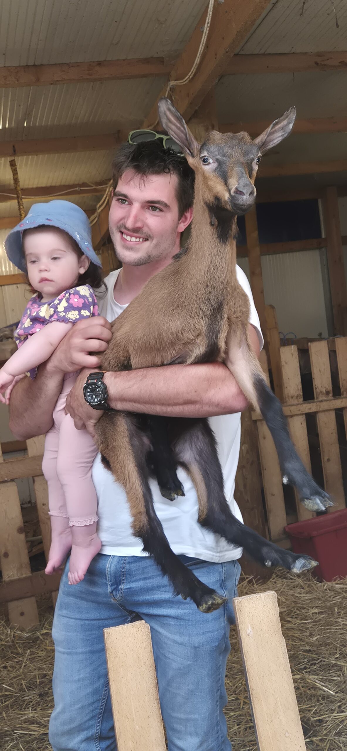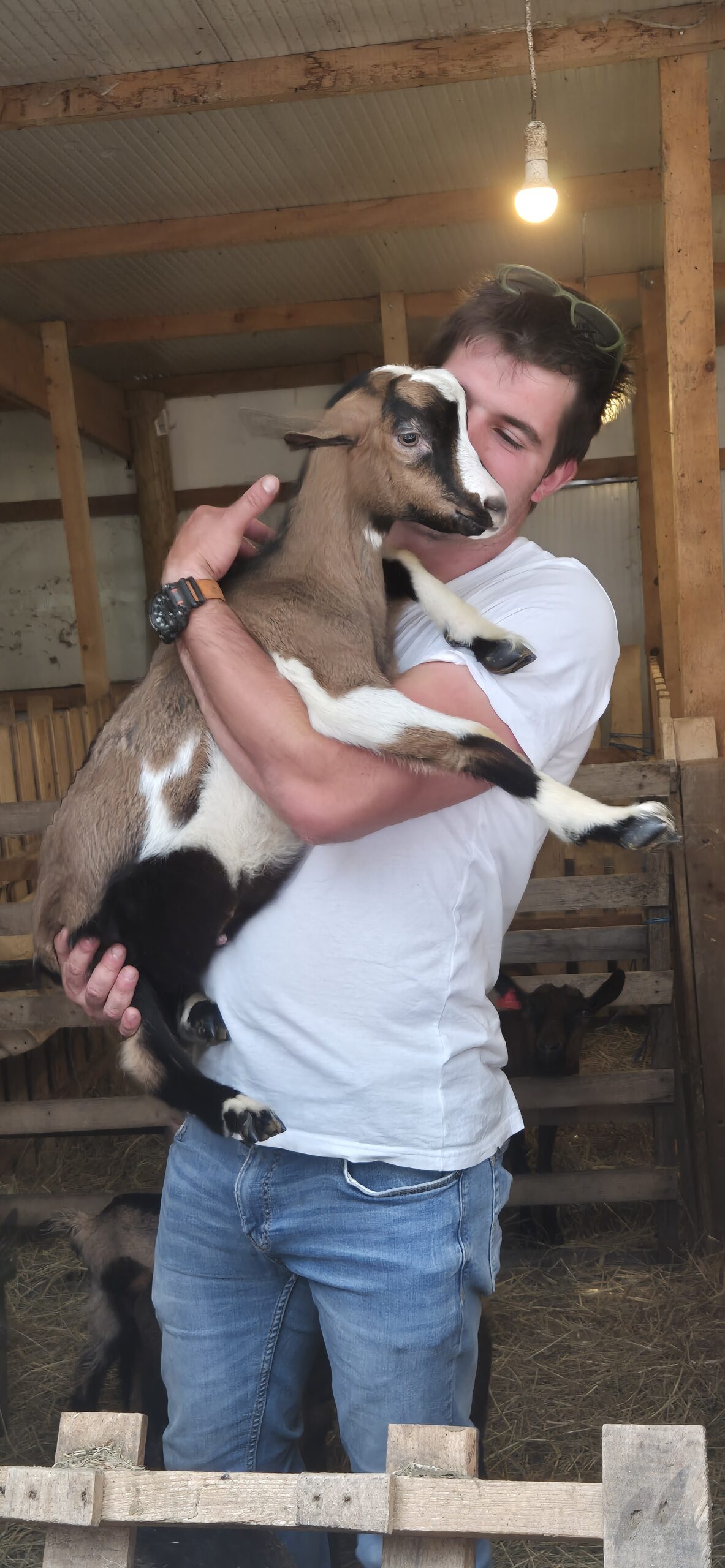 Uz oca Robija, Pierova ideja o kozarstvu zaživjela je prije četiri godine, saznajem na lijepoj terasi usred prirode nedaleko njegove farme koza. Tu me je Piero dočekao s pladnjem njegovih sireva i svježim pjenušcem. Priča mi kako je entuzijazam brzo zahvatio cijelu obitelj, pa su osnovali OPG Dol. Danas ondje rade Robi, majka Helena, sestra Marta i Pierova partnerica Katarina. Na imanju u Kranjcima drže 25 francuskih alpina te imaju mini siranu u kojoj svakodnevno nastaju novi proizvodi.
